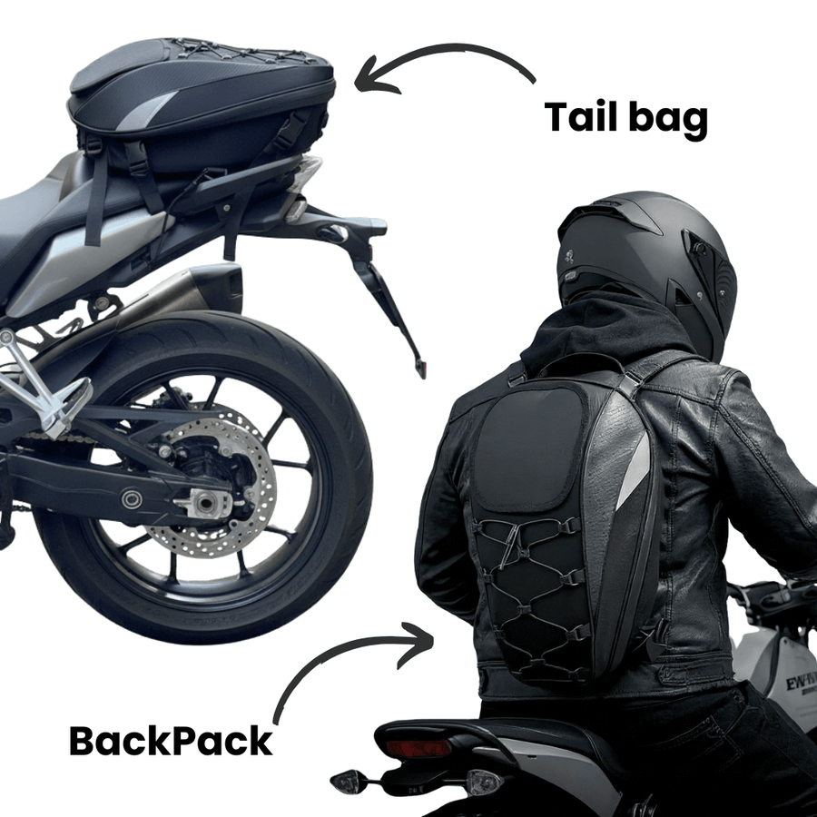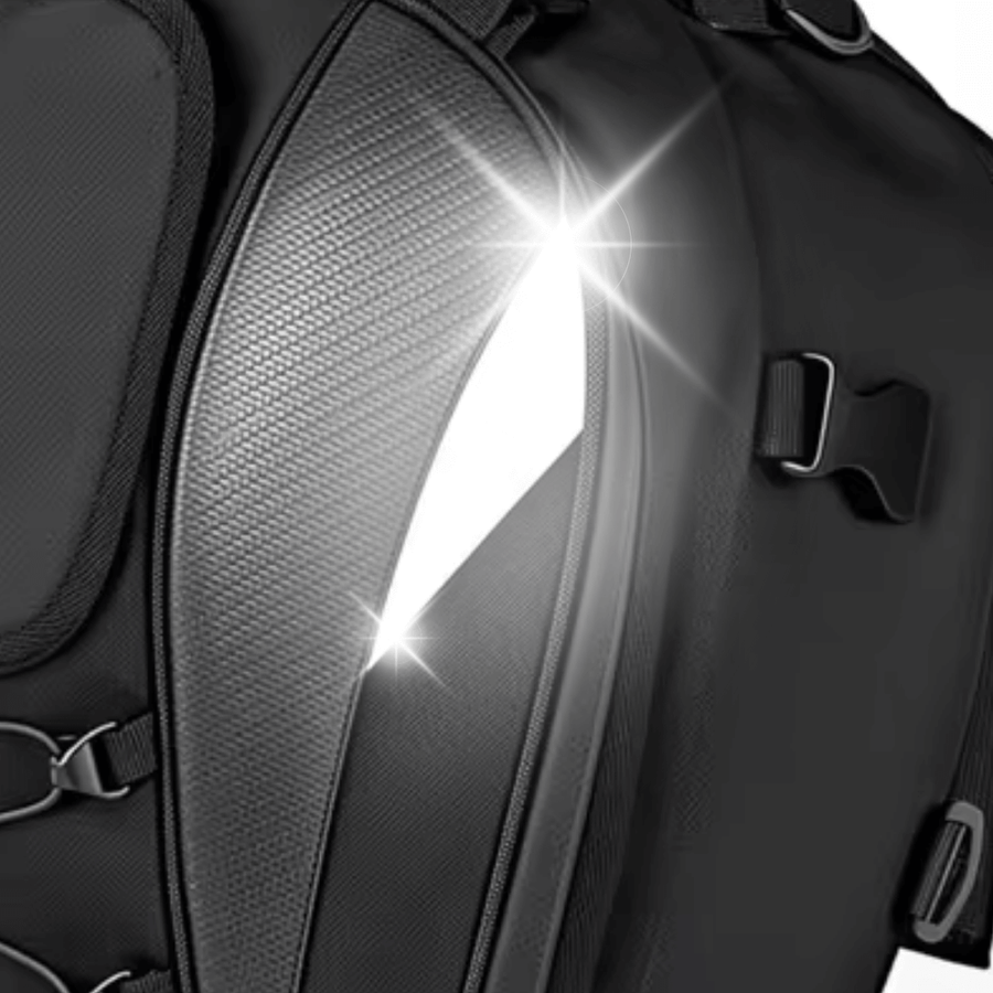 The Dual-Use Waterproof Helmet Bag solves it all. With expandable 25L–38L capacity, true waterproof protection, and reflective safety design, it mounts securely to your rear seat in minutes, and instantly transforms into a backpack when you’re off the bike.