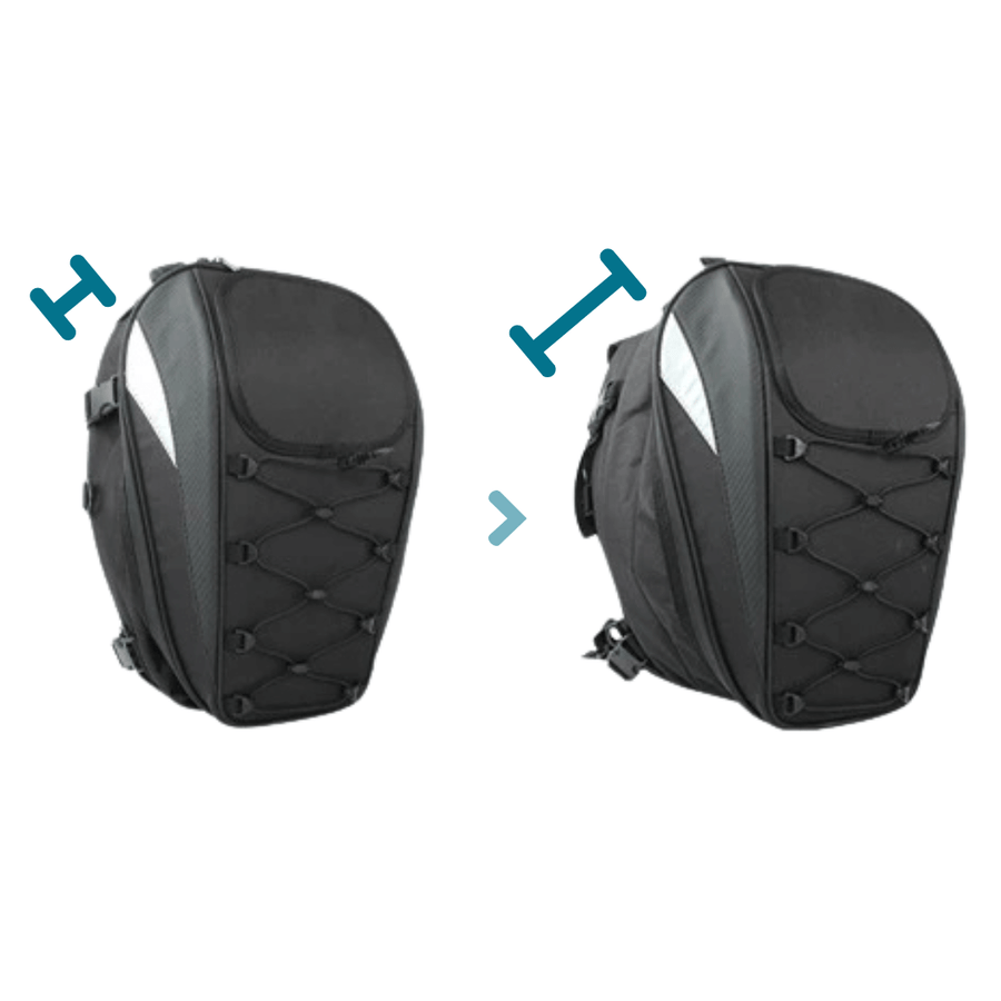 Big enough for a full-face helmet, gloves, jacket, and tools. Need more room? Just expand it. Not using it all? Keep it compact.