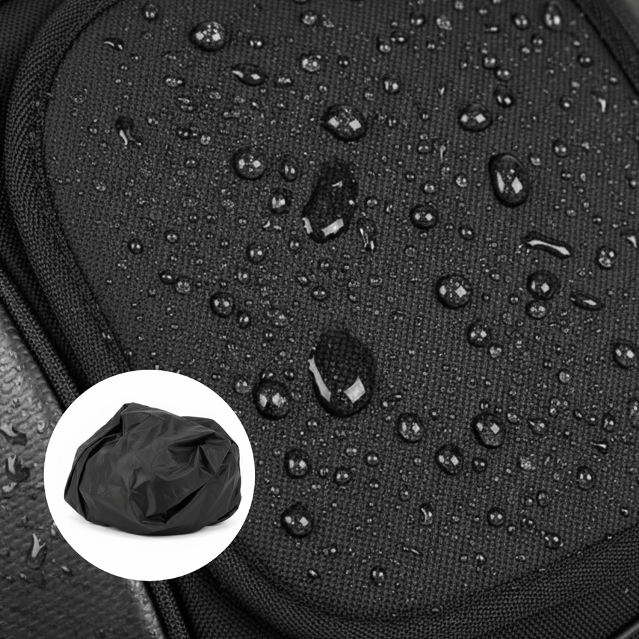 The bag uses anti-splash waterproof fabric and comes with a dedicated rain cover for double protection.