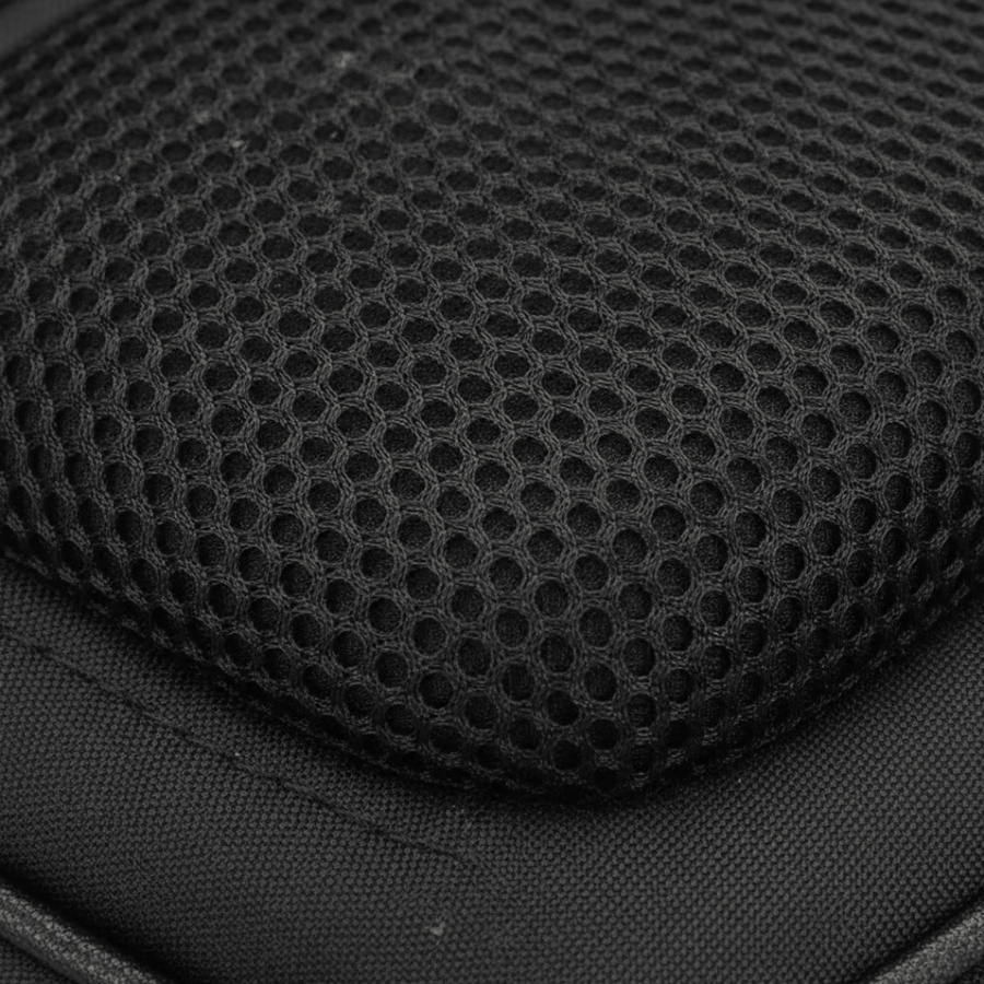 The honeycomb mesh back pad lets air flow, cuts down sweat, and makes it easy to carry.