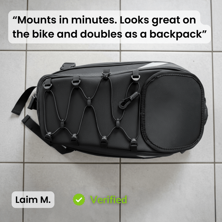On the bike, it’s a tail bag. Off the bike, it’s a backpack or a hand-carry. One bag, multiple uses. Built for commuting and touring alike.